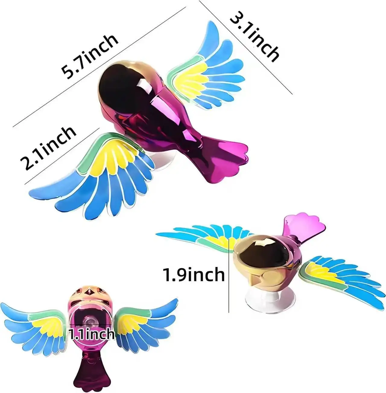 Vibrant Rainbow Metallic Wings – Features colorful, eye-catching metallic wings that shimmer under sunlight or indoor lighting, adding a playful and decorative element to any space.